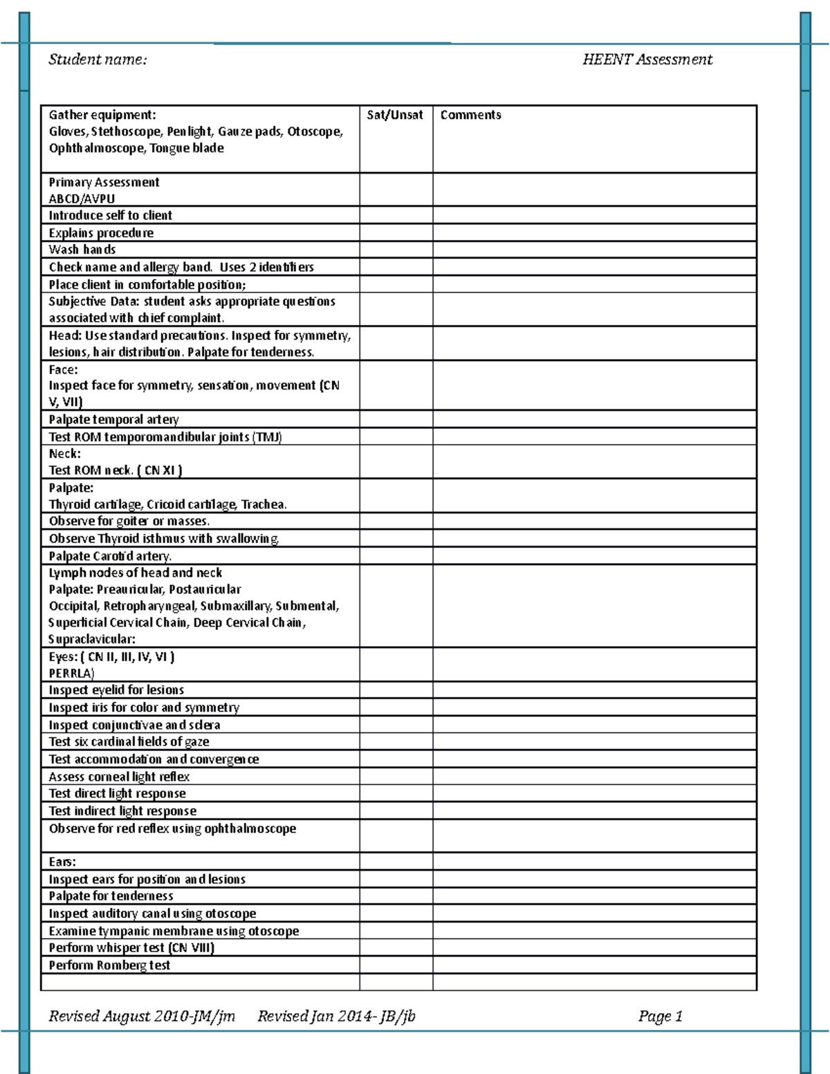 Heent Exam Checklist - ehe 10. NURS 5121Advanced Health Assessment ...