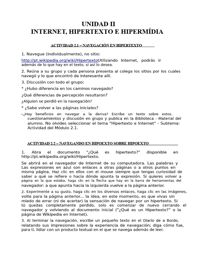 Actividades Del Módulo Ii - Internet, Hipertexto y Hipermedia | PDF ...