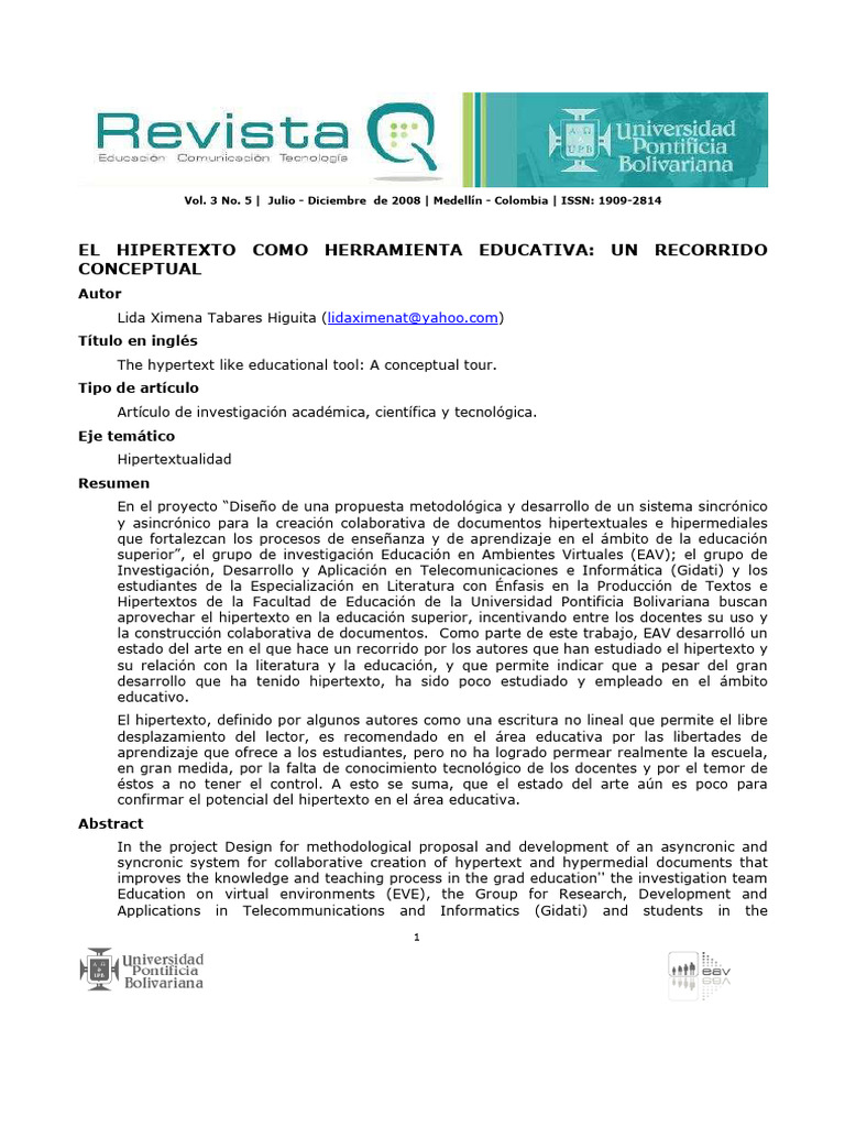 Hipertexto en Educación Superior: Potencial y Retos | PDF | Hipertexto ...