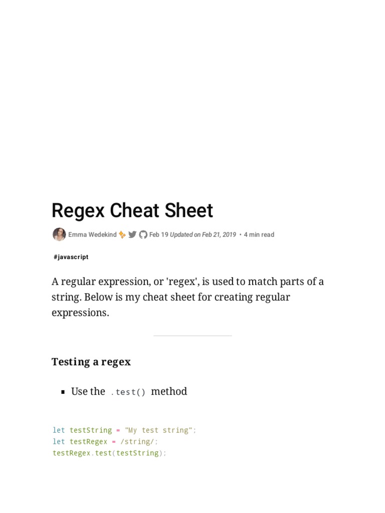 Regex Cheat Sheet - DEV Community ? ?? ? | PDF | Regular Expression | Text