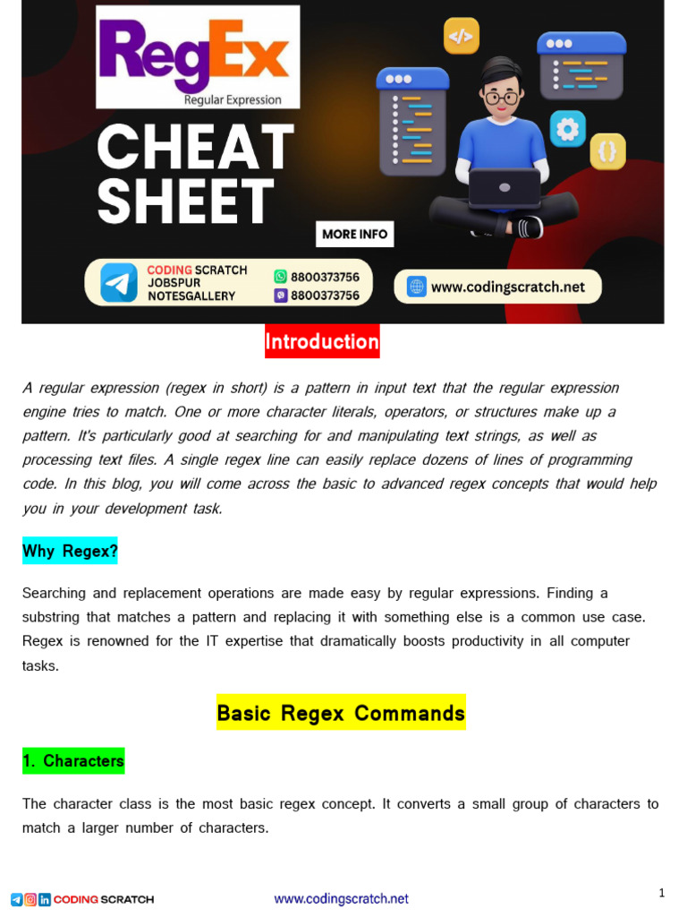 Regex Cheat Sheet 1 | PDF | Regular Expression | Computer Programming