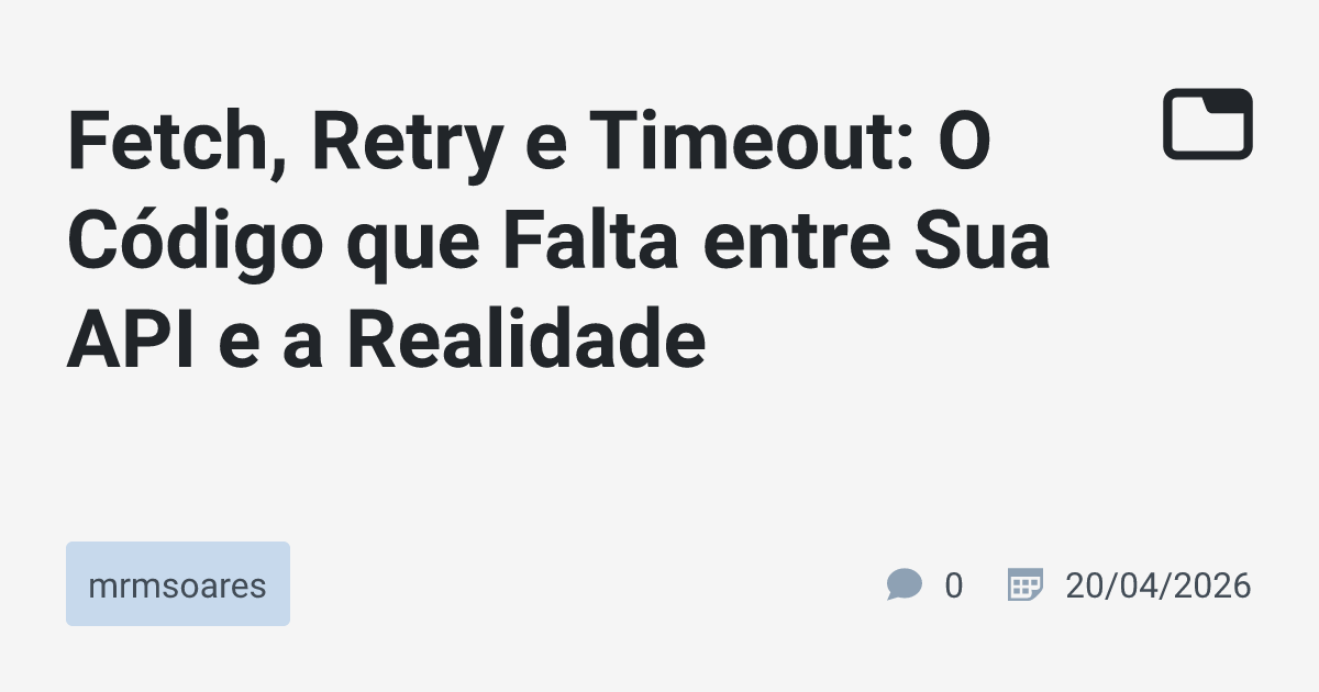 Fetch, Retry e Timeout: O Código que Falta entre Sua API e a Realidade ...