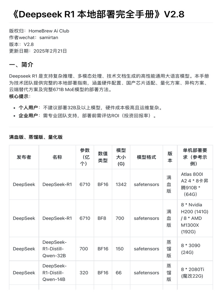 《Deepseek R1 本地部署完全手册》V2.8 | PDF