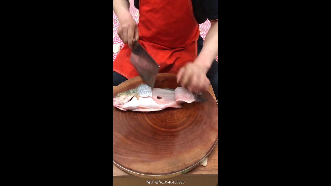 Slicing whole fish with sharp knife creating deep even scores for ...