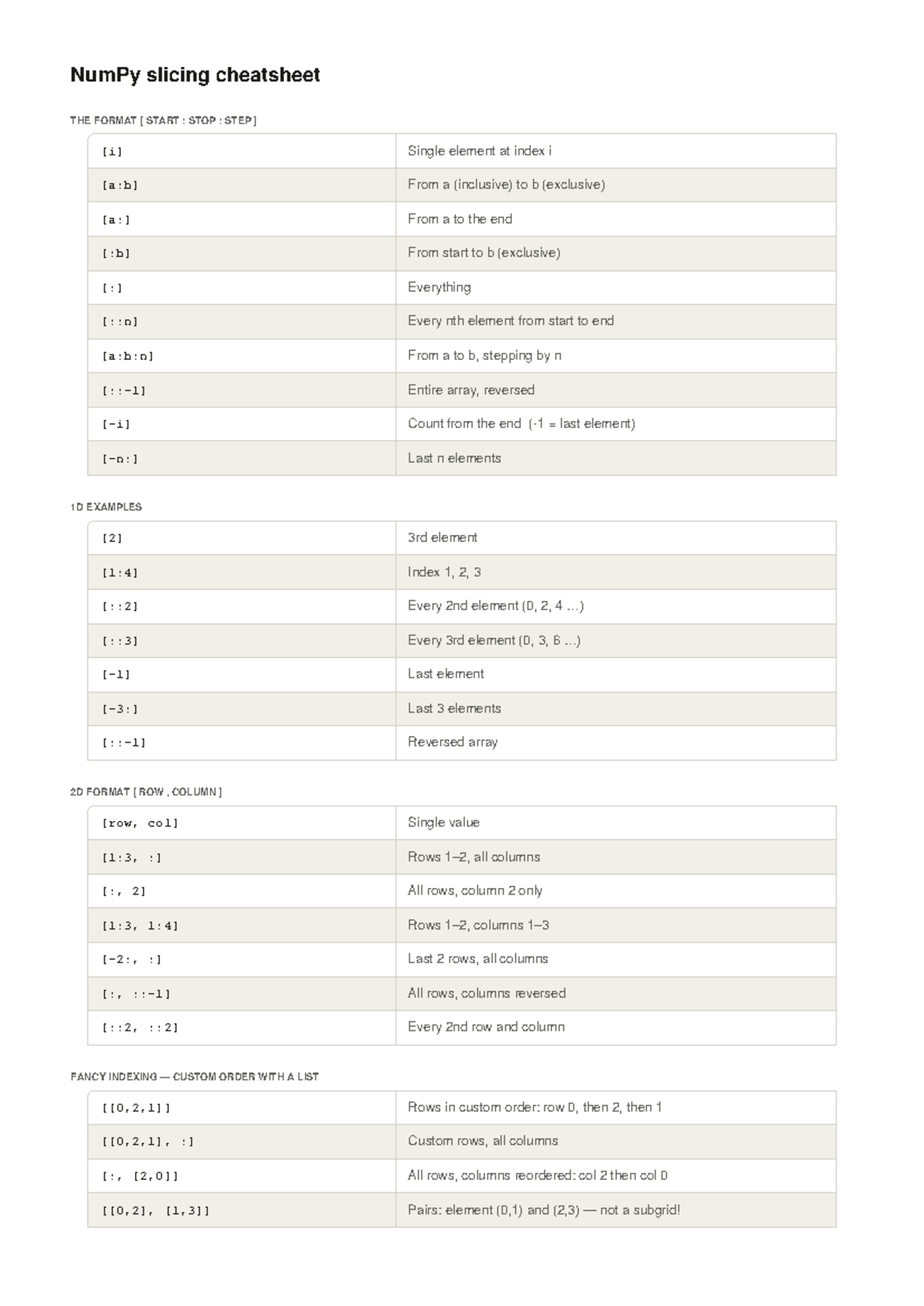 NumPy Slicing Cheatsheet: Syntax & Examples for Quick Reference - Studocu