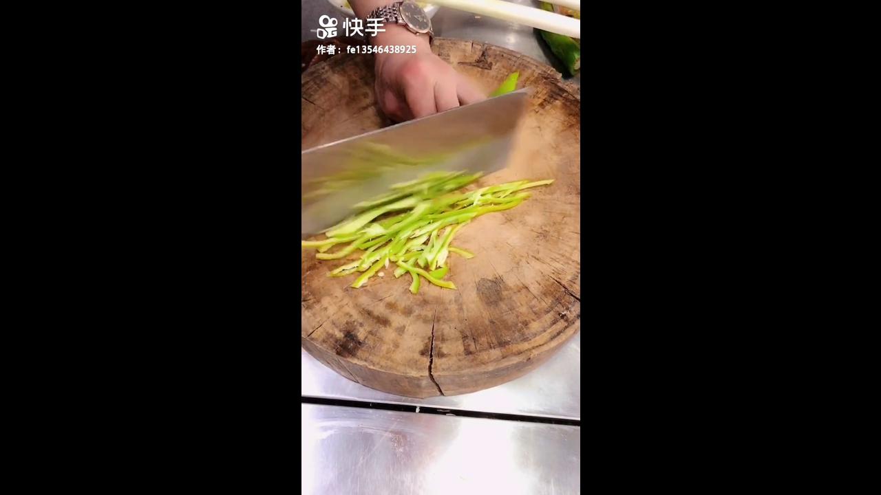 Slicing long green pepper with sharp cleaver on wooden board creating ...