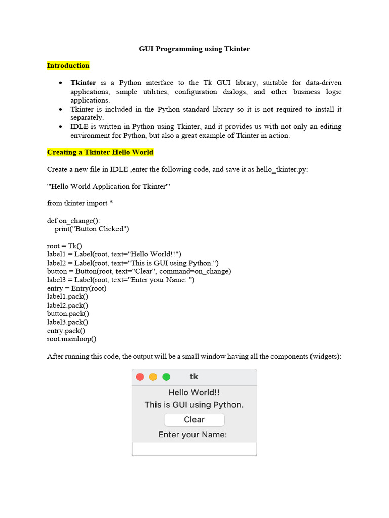 Introduction To Tkinter | PDF | Python (Programming Language) | Button ...