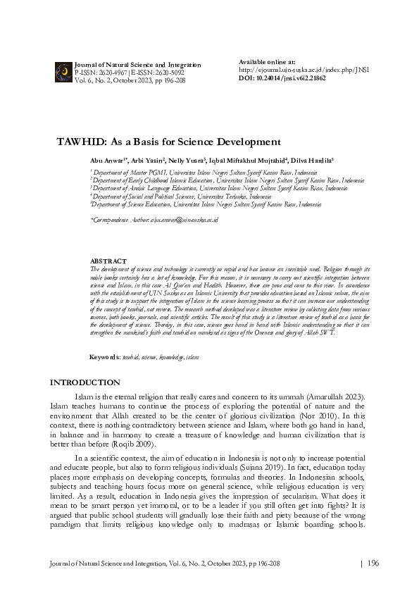 (PDF) TAWHID: As a Basis for Science Development