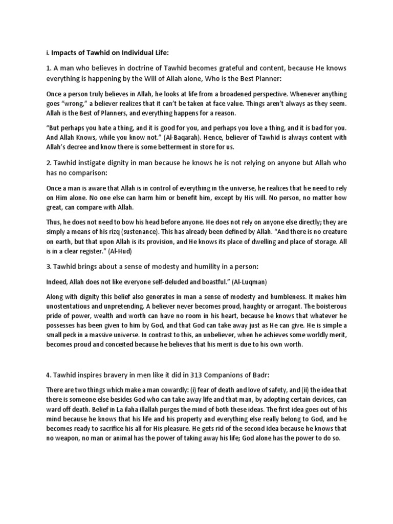 Impact of Tawhid | PDF | Tawhid | God In Islam
