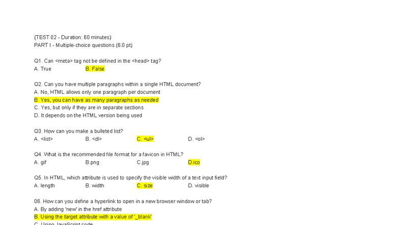 Multiple Choice Questions On HTML CSS Javascript With Answers | PDF ...