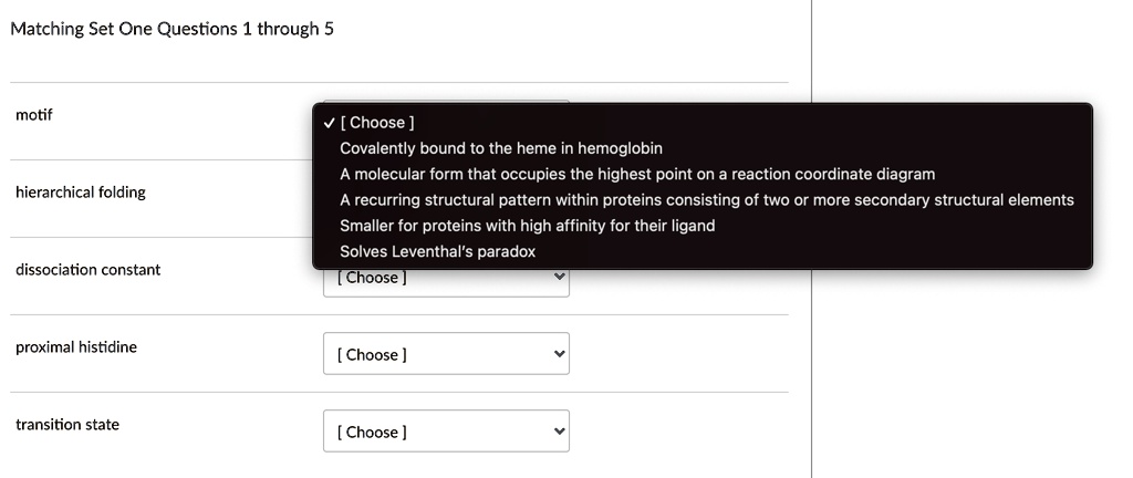 Matching Set One Questions 1 through 5 motif hierarchical folding ...