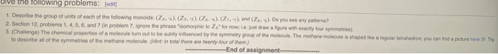 Solved the following problems: [edit] 1. Describe the group | Chegg.com
