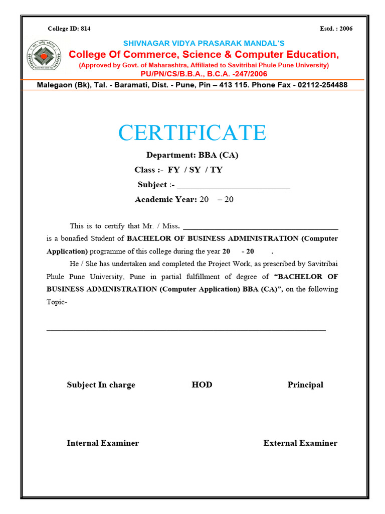 Journal - Assignment Certificate For BCA For Project Report | PDF