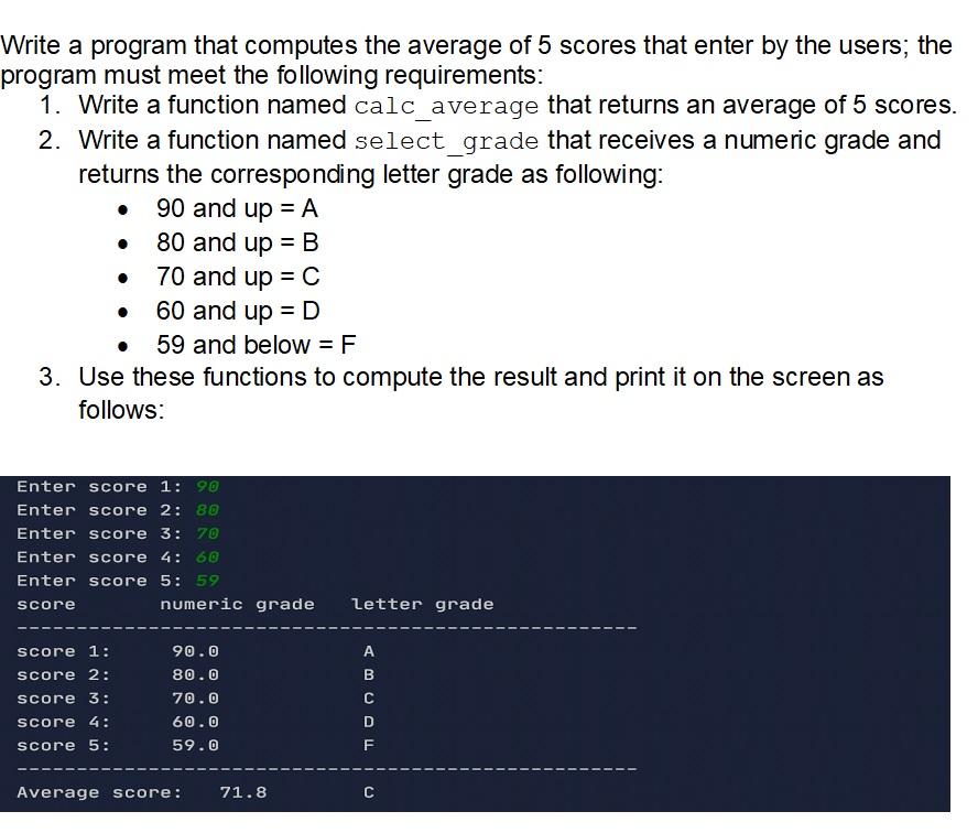 Solved Write a program that computes the average of 5 scores | Chegg.com