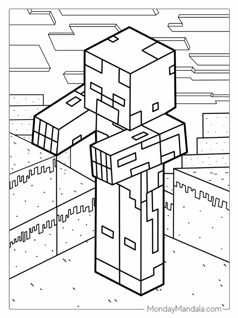Minecraft Zombie Coloring Page | Coloring-Pages.com