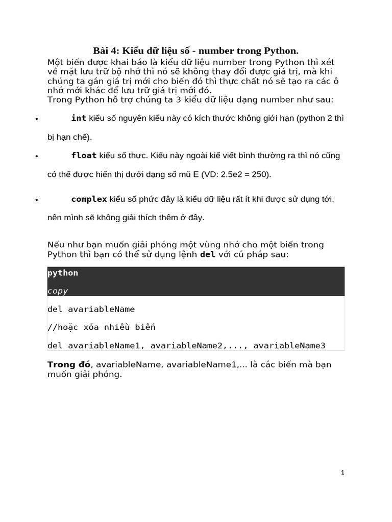 Bài 4 Kiểu dữ liệu số - number trong Python | PDF