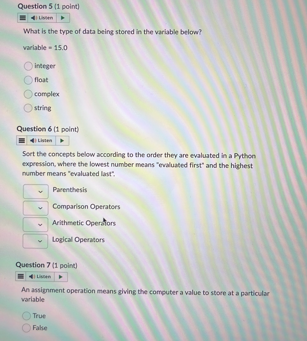 Question 5 (1 point) What is the type of | StudyX
