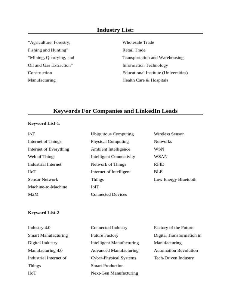 Industry List, Keyword, Executives-File | PDF | Internet Of Things ...