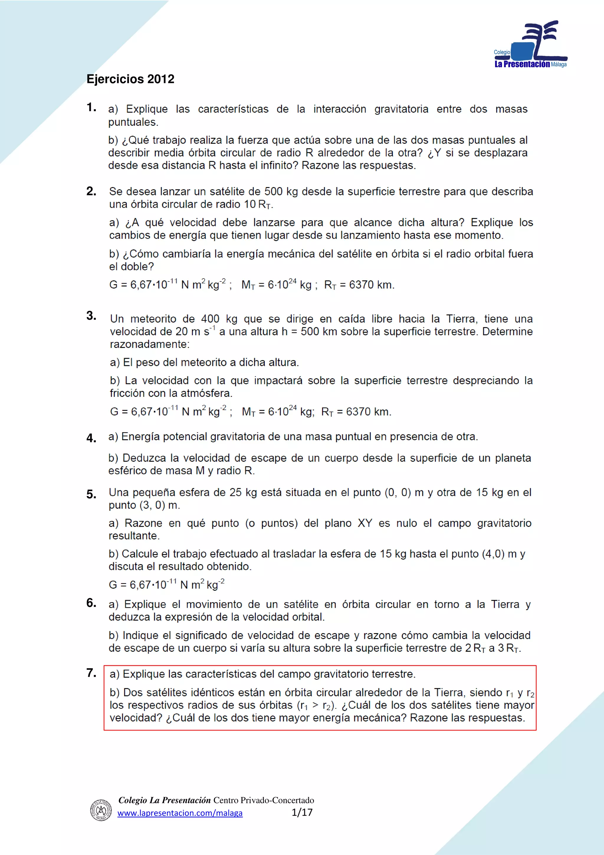 Relación de ejercicios realizados en gravitatorio - Profesor: David ...