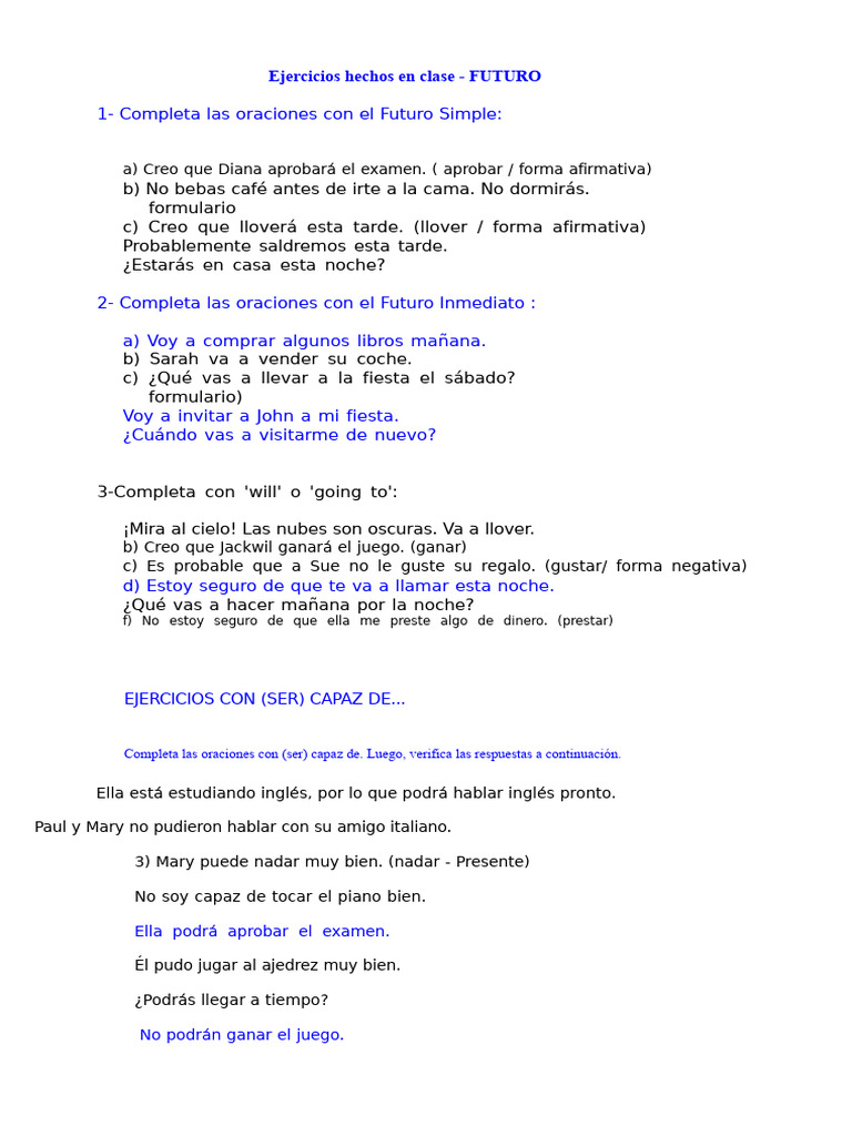 Ejercicios Realizados en Clase - FUTURO | PDF