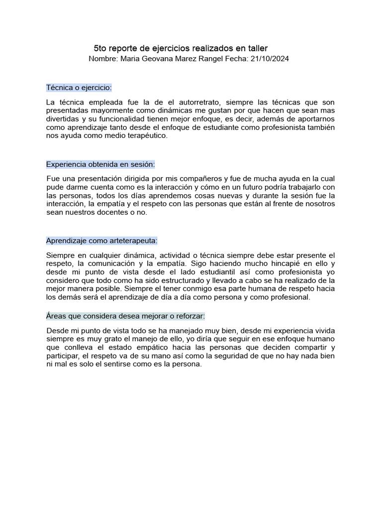 Formato de 6to Reporte de Ejercicios Realizados en Taller | PDF ...