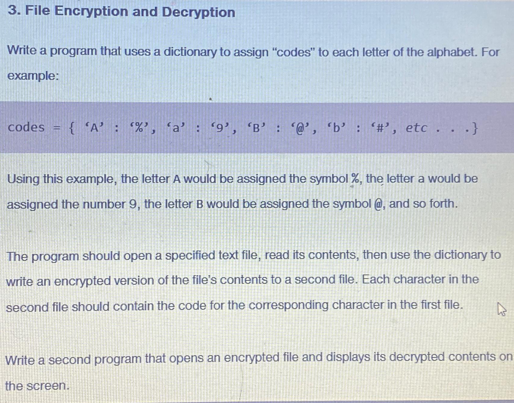 Based on this image's title: “Solved File Encryption and Decryption Write a program that | Chegg.com”