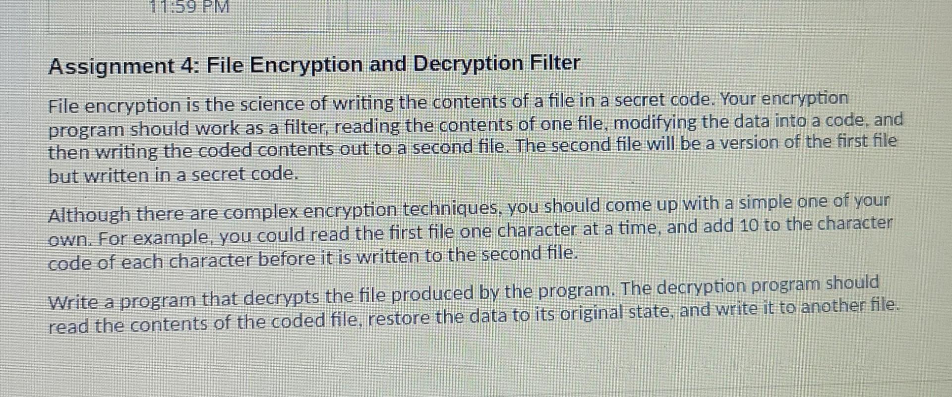 Solved 11:59 PM Assignment 4: File Encryption and Decryption | Chegg.com
