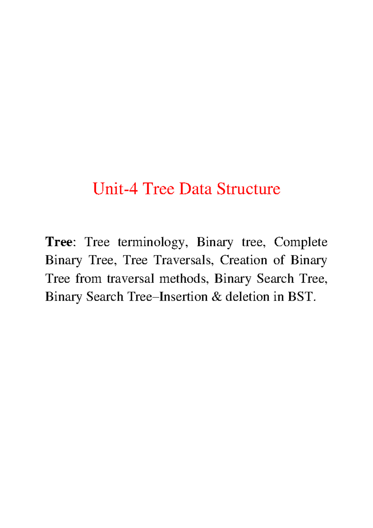 DS Unit4: Comprehensive Notes on Tree Data Structures and BST - Studocu