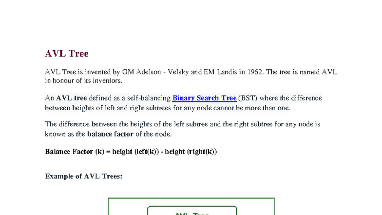 AVL Tree - data structure - Studocu
