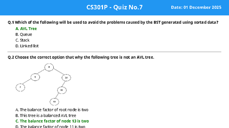 CS301P Quiz No.7 - AVL Trees and Binary Search Trees - Studocu