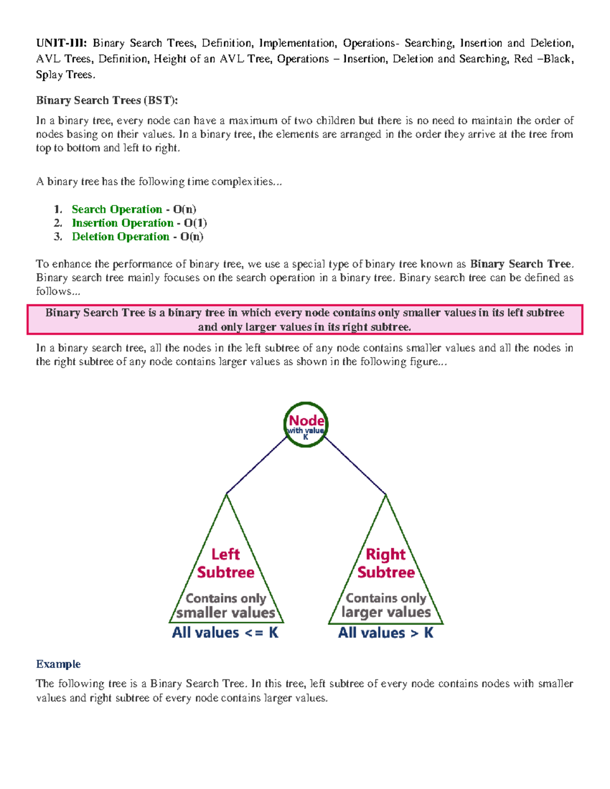 DS UNIT-III: Binary Search Trees, AVL Trees, and Splay Trees Notes ...