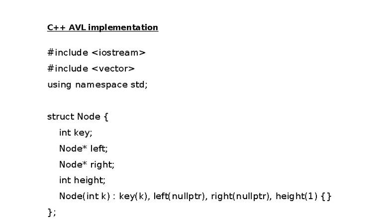 Avl trees c++ - c++ notes on how to inplement an avl tree - #include # ...