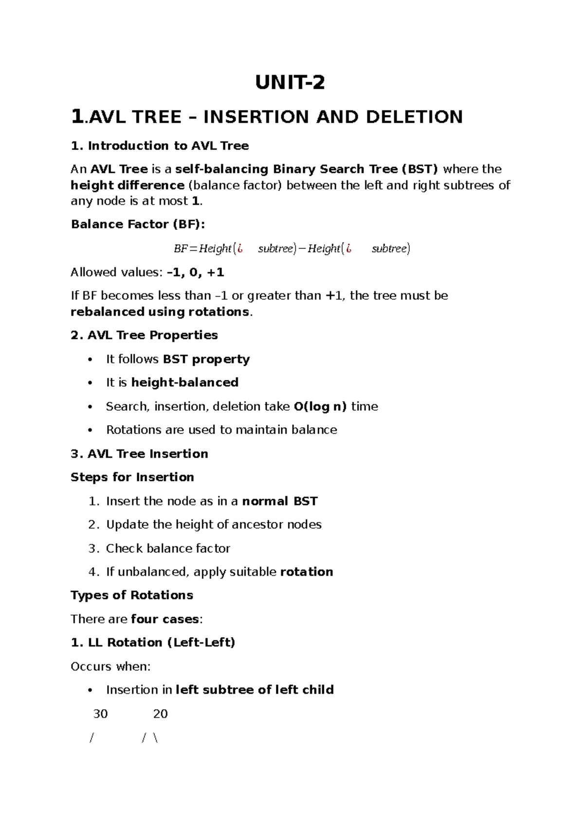 ADSD - AVL Tree Insertion & Deletion Notes - Studocu