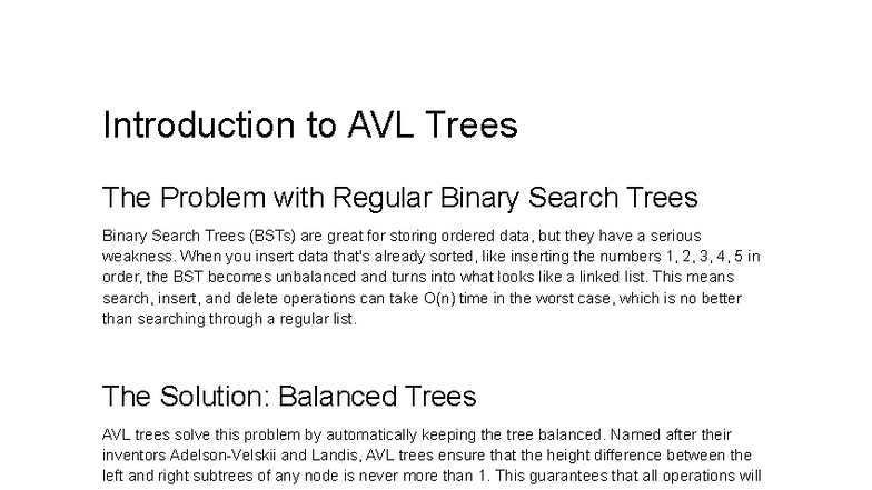 Advanced Data Structures II: AVL Trees Overview and Rotations - Studocu