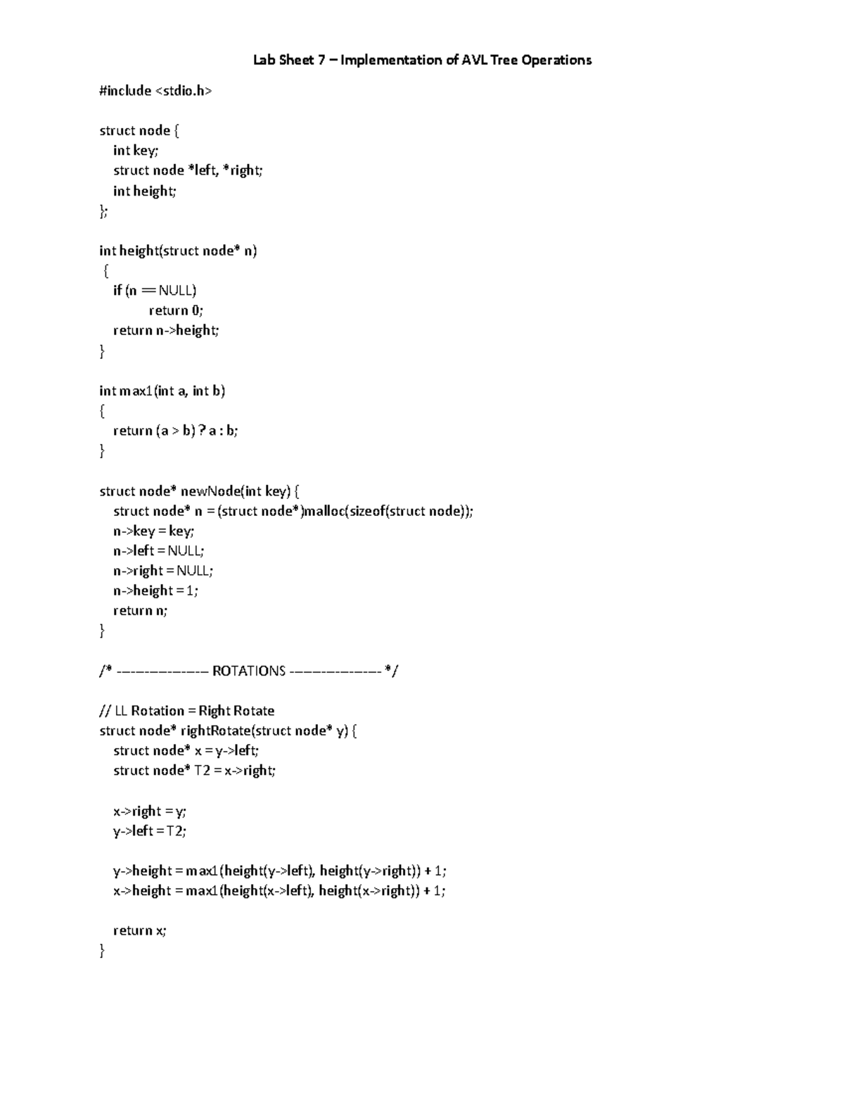 AVL Tree Operations Lab Sheet - B035b1db - Studocu