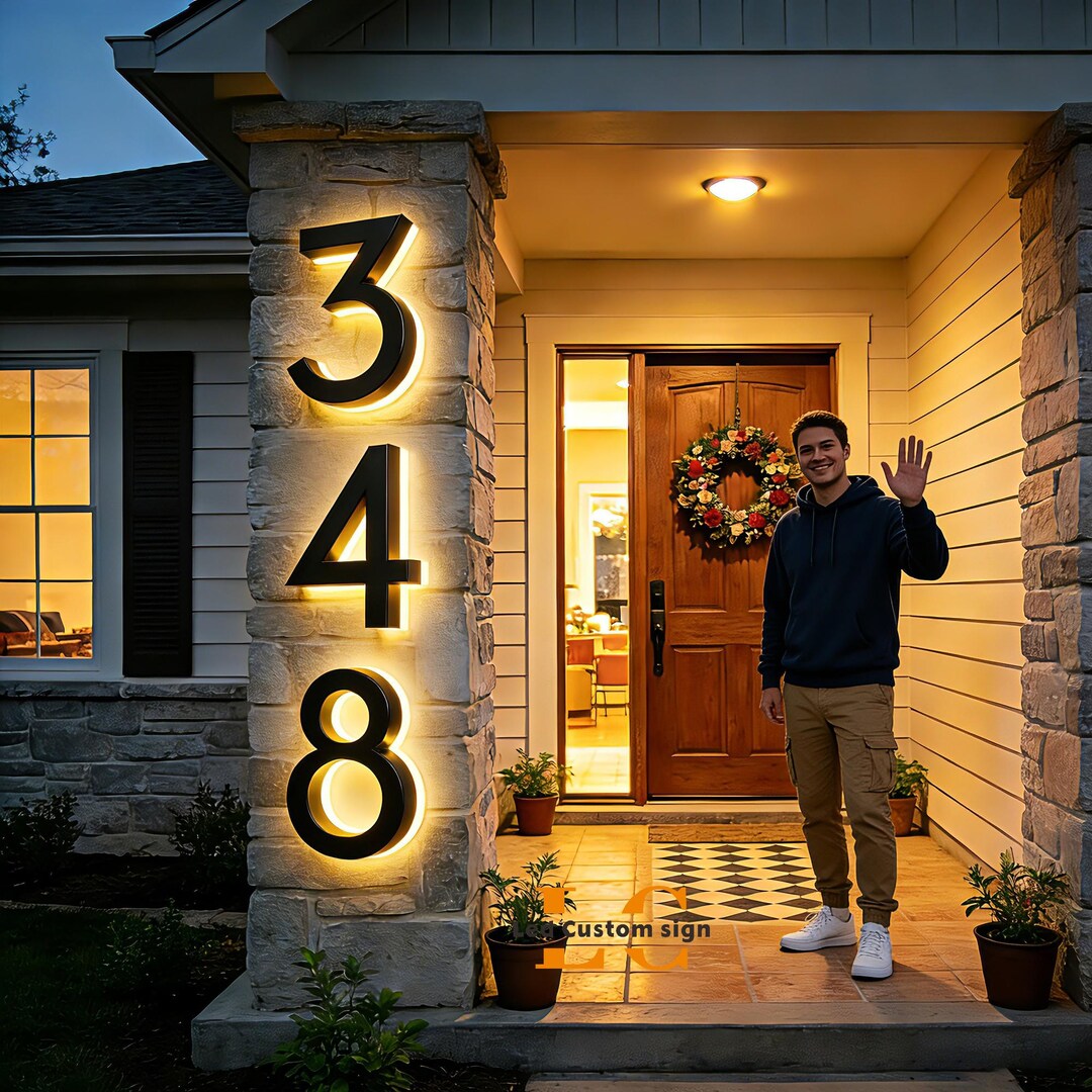 Solar House Numbers Light, Custom Address Sign, Waterproof LED Address ...