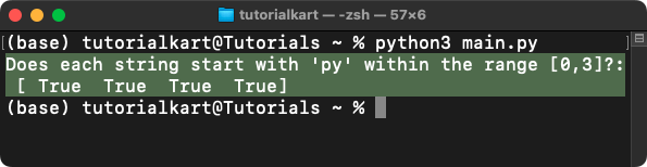 NumPy strings.startswith() - If Starts With Specific Prefix