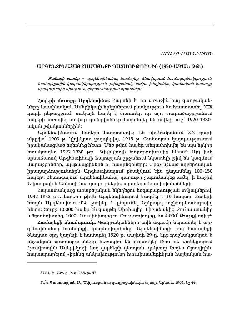 On The History of The Armenian Diaspora of Argentina (In 1950s) | PDF