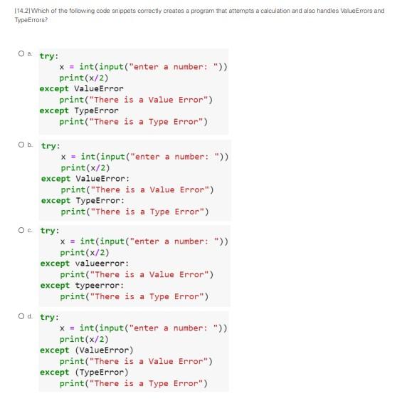 Based on this image's title: “Solved Which of the following Python code snippets can be | Chegg.com”