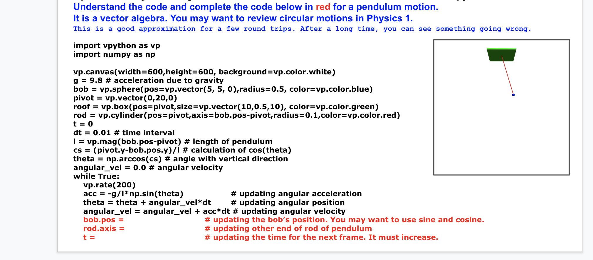Solved I need help to code vpython this one Web VPython | Chegg.com