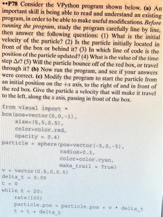 Solved - P78 Consider the VPython program shown below. (a) | Chegg.com