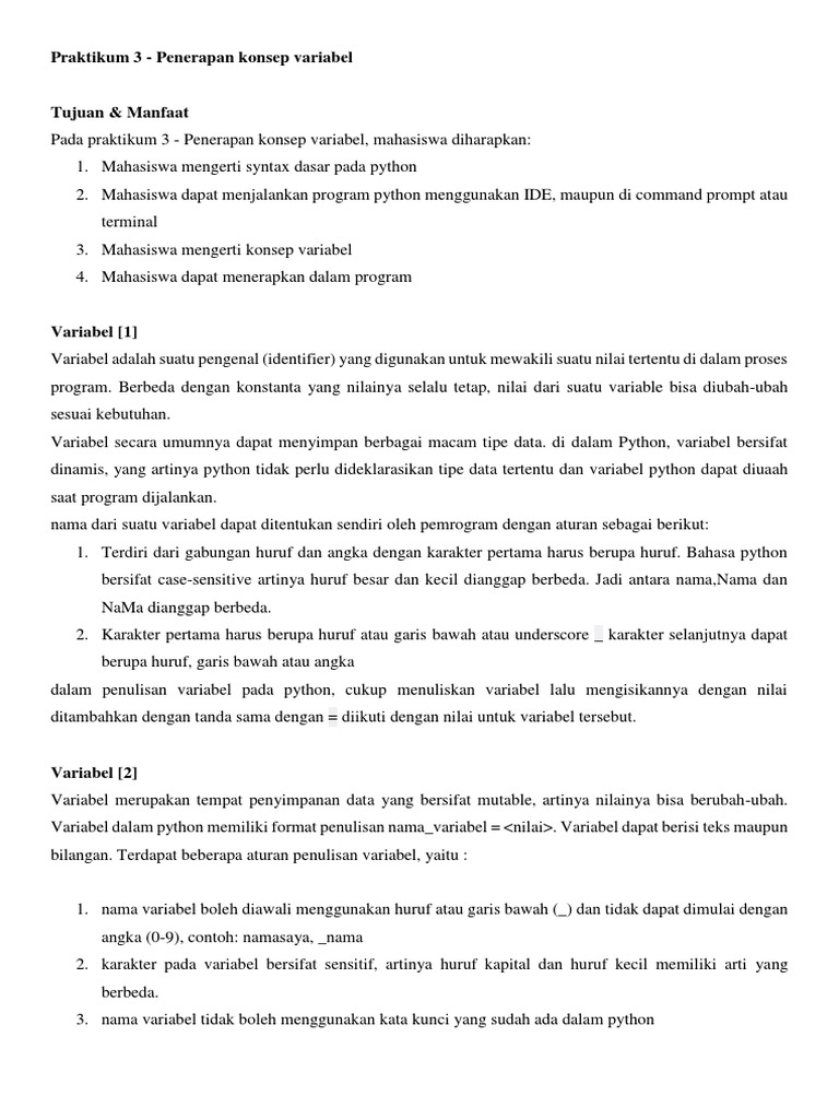 Based on this image's title: “Aturan dan Contoh Variabel Python | PDF”
