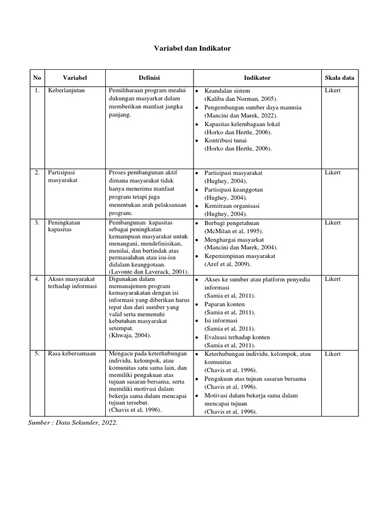 Tabel Variabel Dan Indikator Penelitian | PDF