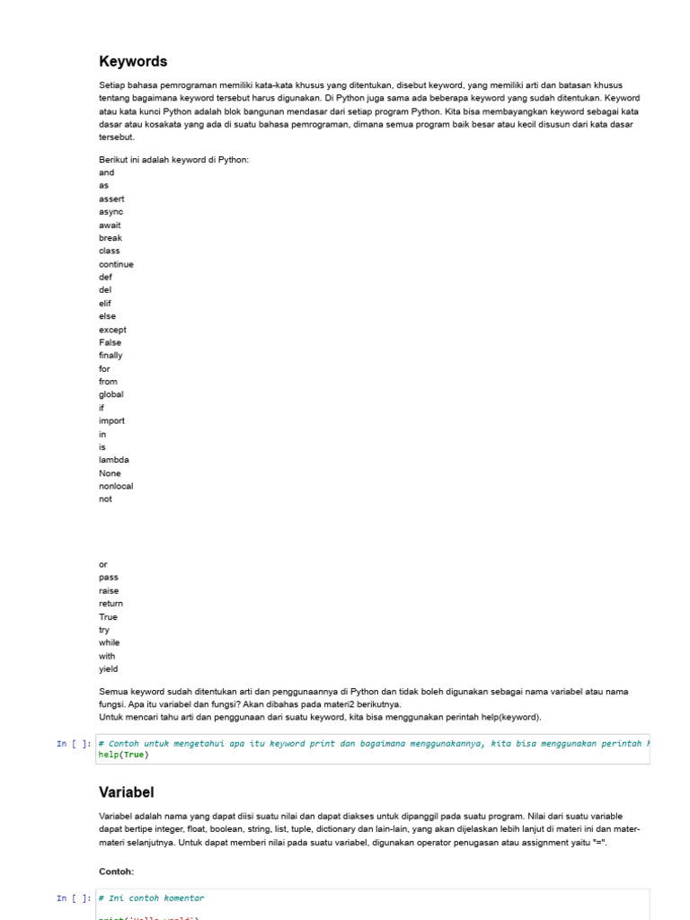 Panduan Dasar Keyword & Variabel Python | PDF | Metode & Bahan Ajar