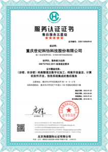售后服务体系完善程度认证证书GB/T27922-2011
