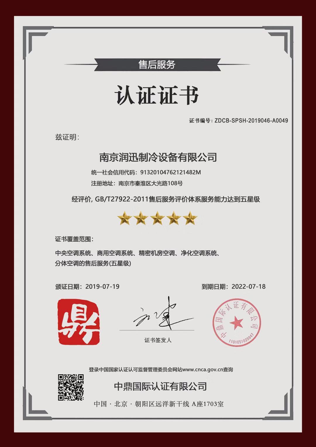 GB/T27922 五星售后服务-GB/T27922 售后服务认证-中博检验认证技术服务(江苏)有限公司官网-ISO9001认证 ...