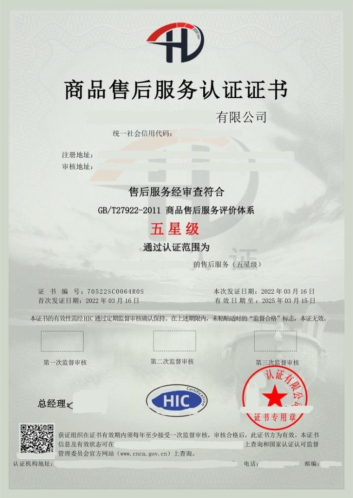 GB/T27922五星售后服务|体系认证咨询-山东启龙认证咨询有限公司