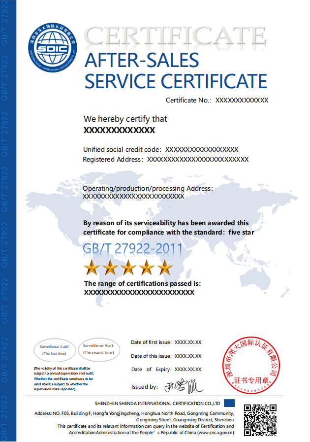 GB/T 27922-2011 商品售后服务认证-深圳中天国际认证有限公司