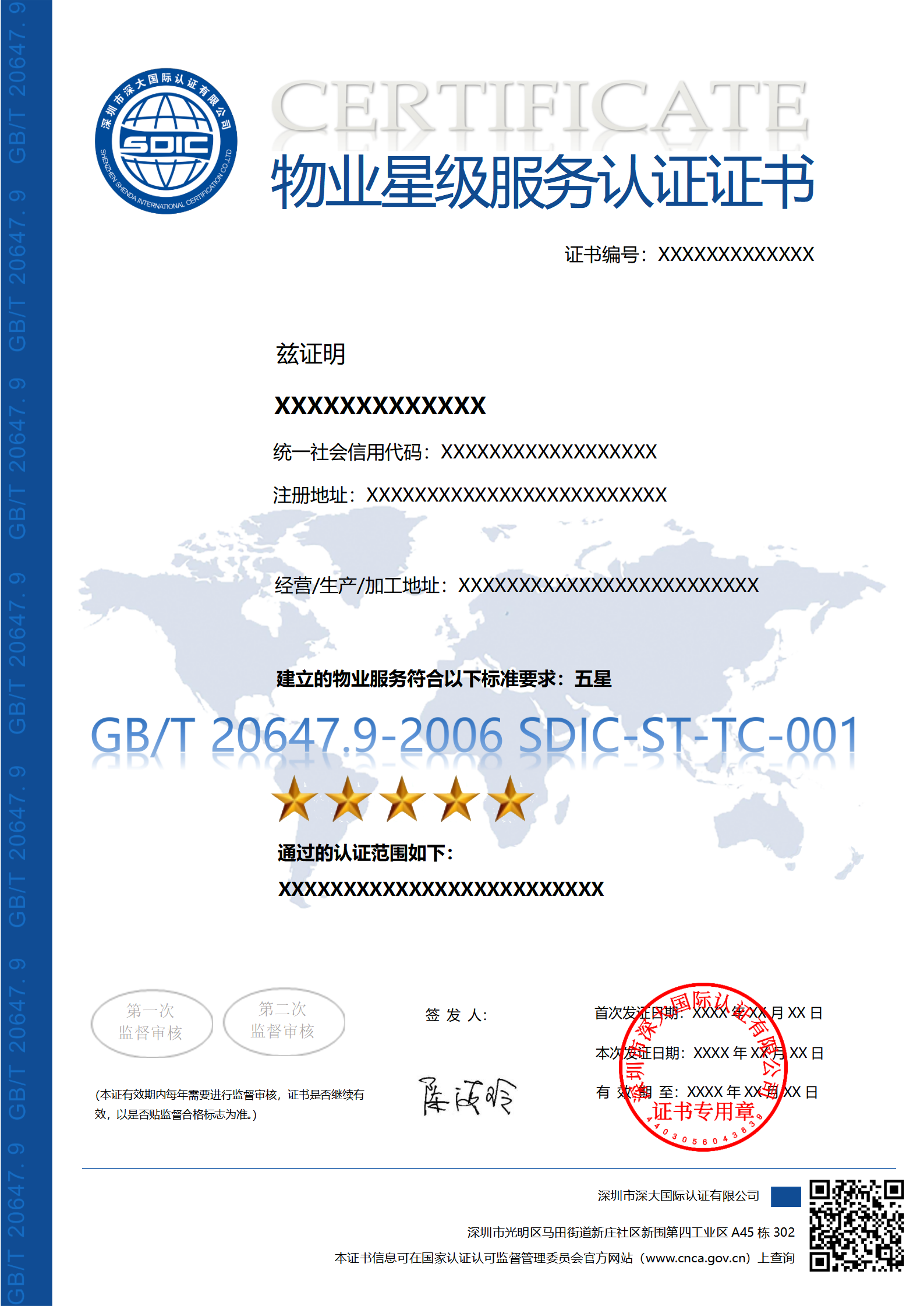 深圳市深大国际认证有限公司 - 证书模板