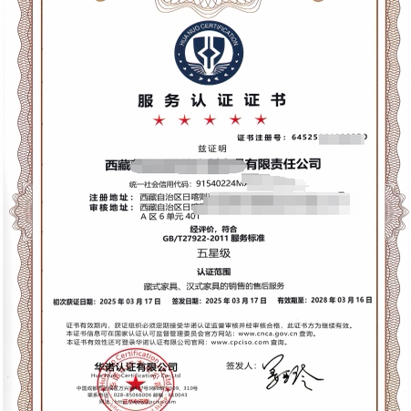 鸿业家具获商品售后服务评价体系GB/T27922-2011三星级服务认证|鸿业家具